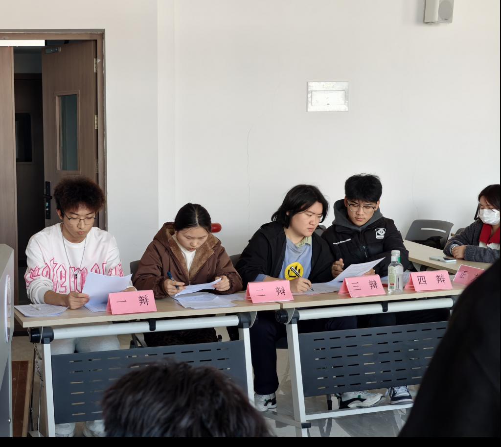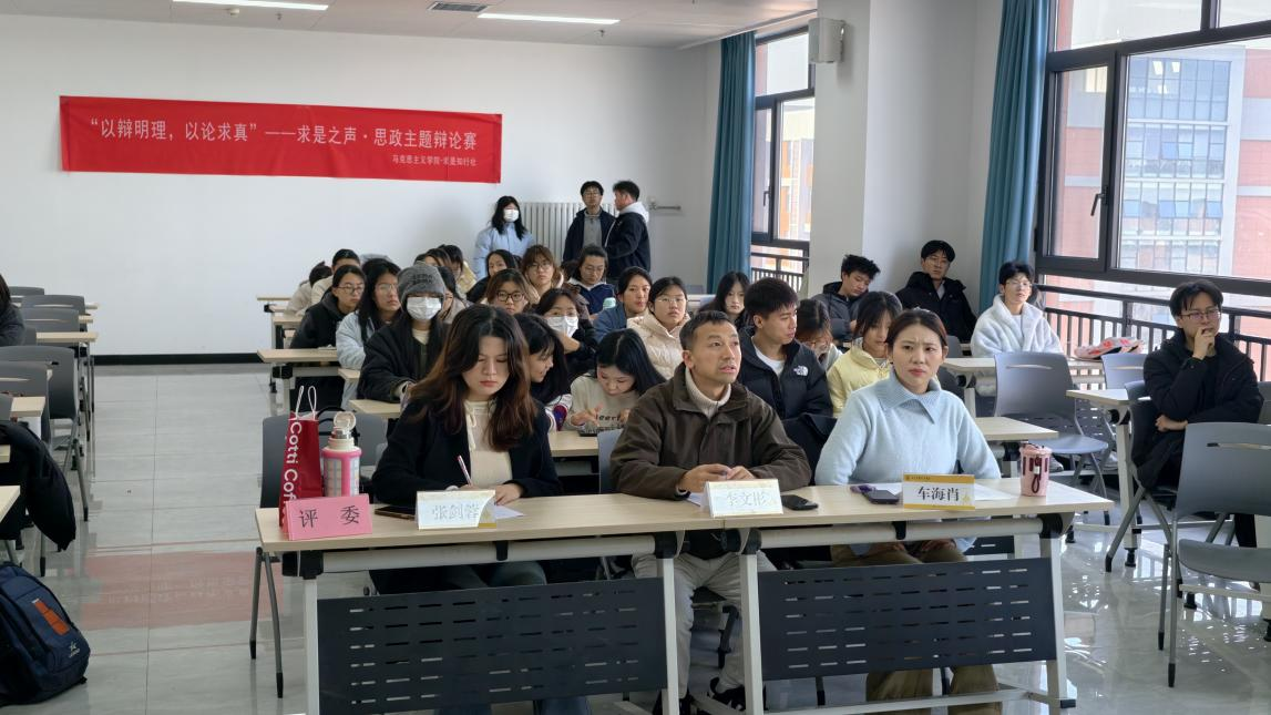 为了深入学习贯彻习近平新时代中国特色社会主义思想,践行“知行合一”的育人理念,提升开元学生的思辨能力与理论联系实际的水平,12月5日中午12:30至13:30,由马克思主义学院求是知行社主办的“求是之声”思政主题辩论赛复赛在8号楼801教室顺利举行。本次复赛共四支队伍参与,围绕两组贴近时代、关乎人生的辩题展开激烈交锋,展现了青年学子敏锐的思维与扎实的理论素养。比赛由张剑蓉、车海肖、李文彬三位思政教师担任评委。