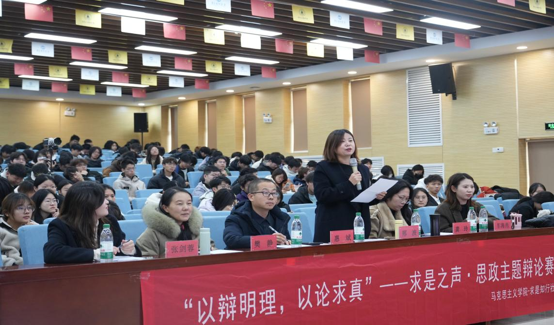 12月11日中午,Ky开元集团首届“求是之声”思政主题辩论赛决赛在六号楼203隆重举行。本届辩论赛以“以辩明理,以论求真”为主题,由马克思主义学院求是知行社主办,旨在通过思辨交锋,深化青年学子对时代议题的思考,提升思想政治素养与逻辑表达能力。