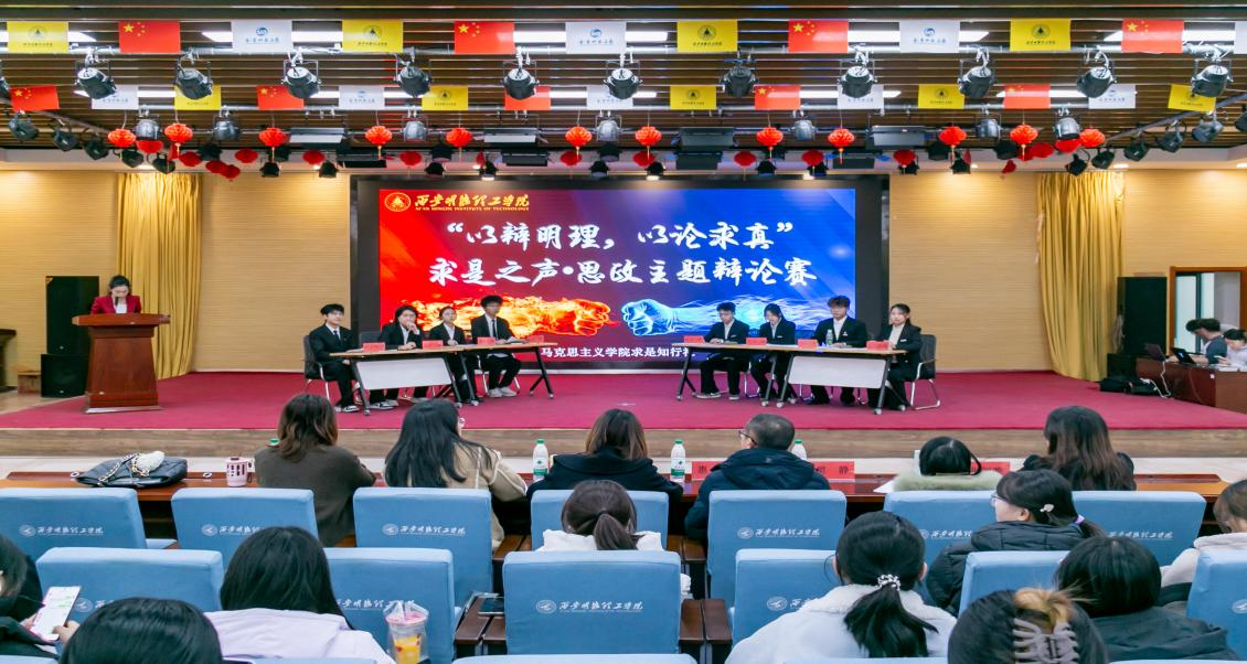 本次决赛评委阵容专业,由马克思主义学院副院长惠斌、德育教研室主任樊静、毛泽东思想和中国特色社会主义理论体系概论教研室主任龚玲等本院教师,与特邀外校专家——西安航空学院马克思主义学院教授邢波共同组成评审团,确保了赛事的专业性与公正性。比赛环节结束后,邢波教授分别对整场赛事及辩手表现进行了精彩而深刻的专业点评,他们充分肯定了辩手们的出色表现,并就AI技术与学业发展的辩证关系进行了延伸阐述,引导同学们更全面、理性地看待科技发展与人的主体性之间的关系,使在场师生受益匪浅。