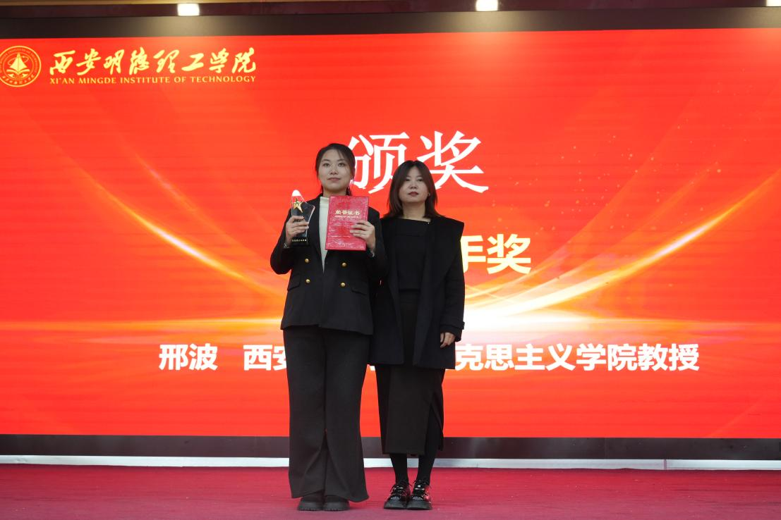 经过评委严谨评分与现场观众投票,最终“你还能有我队”凭借优异表现摘得桂冠,“Ave Mujica队获得二等奖,反方四辩安子琪同学以其突出的个人表现荣获“最佳辩手”称号。马克思主义学院领导及老师分别为获奖集体与个人颁奖。