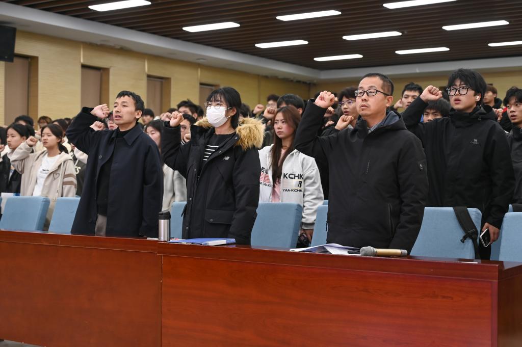 报告中,主讲人路小红法官从三个空间角度解读法律。一是婚姻家庭类,二是社会生活类,三是职业生活类。根据讲解内容,路法官结合相关鲜活案例与自身的工作经历,深入浅出的讲解法律知识,培育大学生法律思维。结论中引用卢梭《社会契约论》中的言论“人生而自由,却不往不在枷锁中”,提醒大学生时时刻刻遵纪守法。最后,路法官请所有参讲座的师生们进行宣誓,激起师生们守法的信念,做一个爱党、爱国、爱人民的守法公民。
