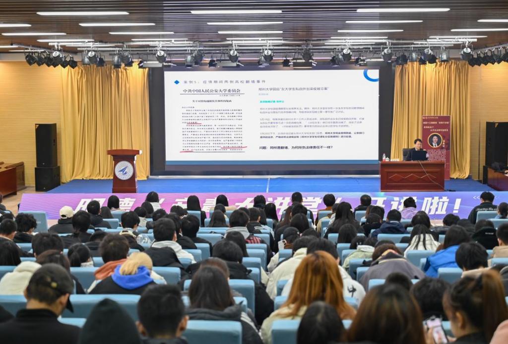 本次报告中,主讲人马永红律师结合个人成长和工作经历,从大学生学习宪法法律的重要意义切入,结合自己亲身经办的案件或典型案例,从恋爱、环境、社交、贪念、网络等五个方面,梳理了大学生在学习和生活中应注意的风险点,提出了若干有针对性的风险防范建议。