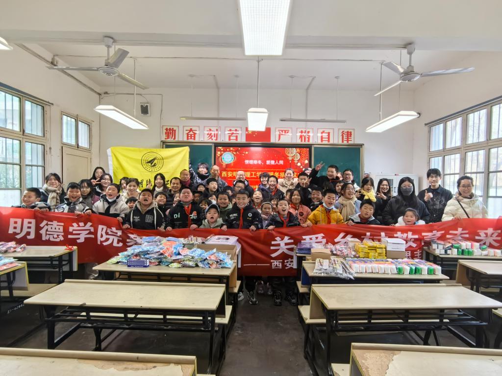 天气渐寒,人心向暖。为积极帮助乡村学校教学设施改善,关爱乡村儿童教育未来,马克思主义学院联合校团委于12月27日上午走进周至县集贤镇永新希望小学,开展“暖冬行动”主题教育活动。马克思主义学院副院长惠斌、校团委副书记刘雄、艺术与设计学院团委书记兰艳、“沐晨”爱心支教服务队全体志愿者等20余名明德师生参加了活动。
