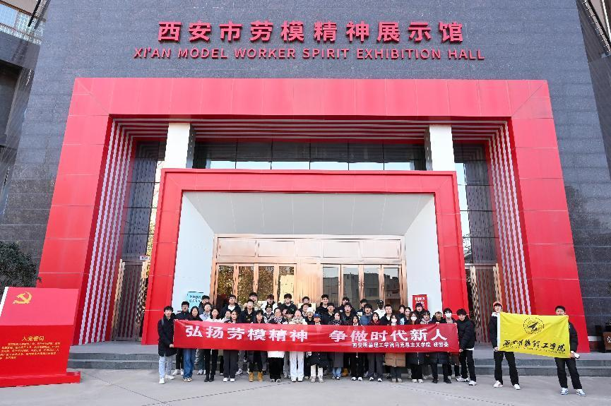 为深入学习党的二十大精神,贯彻习近平总书记关于劳动教育的重要论述,进一步引导大学生树立正确劳动观念,感悟劳模精神,12月21日下午,开元思政教师张啭啭、冯诗淇、王婉菲、马晶晶、王雪、马乾昱带领40余名学生赴西北地区首座劳模精神展示馆——西安市劳模精神展示馆参观学习。本次活动的主题是感受劳模精神,争做时代新人。