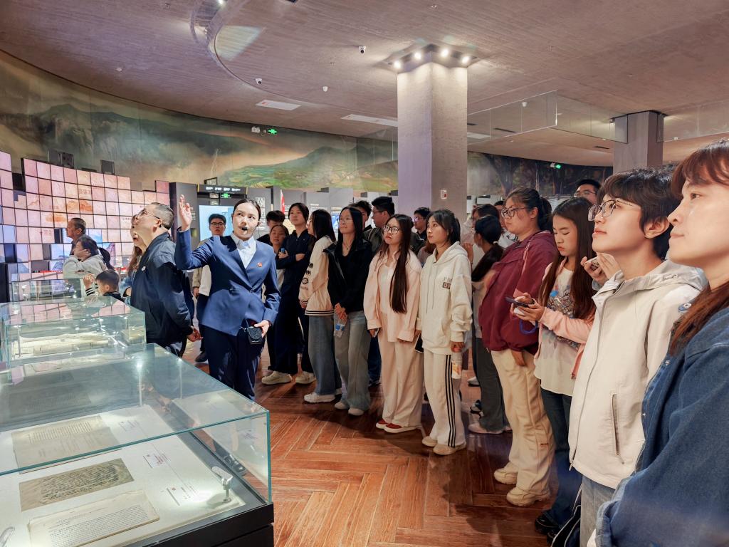 抵达照金镇后,师生们首先来到陕甘边革命根据地照金纪念馆。在这里,德法同行社成员有幸采访到了开元优秀校友、纪念馆资深讲解员乔金薇。乔金薇结合自己多年的讲解经验与对照金精神的深刻理解,向同学们分享了许多珍贵的历史细节与背后的感人故事,并鼓励学弟学妹们要忠诚于党、热爱母校,把个人小我融入国家大我之中。随后,在讲解员的带领下,师生们认真观看了馆内丰富的历史资料、图片以及文物,仿佛穿越时空,见证了陕甘边革命根据地从艰难创建到逐步发展壮大的全过程。
