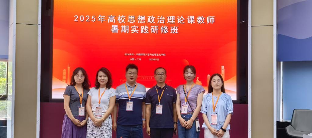 为深入贯彻落实党的二十大、二十届三中全会精神,进一步深化思政课教师对新时代中国特色社会主义实践的认知,7月6日至7月11日,马克思主义学院组织惠斌、张启云、高超、吴山山、李彩琴、张璐等6名思政课教师赴华南师范大学参加2025年高校思政课教师暑期实践研修班。通过专题理论学习、红色文化现场教学、改革开放成果调研等方式,进行深度研修。