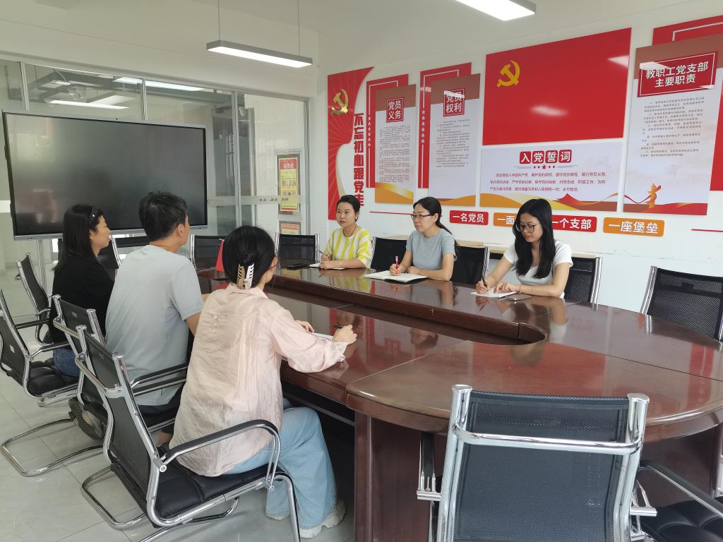 为确保课程思政建设取得实效,双方就目前学校大学英语专业课程思政的开展现状进行了交流。史老师首先介绍了他们在课程思政方面的探索。通过打造“语言能力+价值引领”的课程架构,构建了思政教育与外语能力培养双向赋能的大学英语课程思政育人体系。例如,在课程中,结合时政热点、中西方对比等,将社会热门案例有机融入教学,引导学生自主探索在中外差异,从而自觉树立文化自信,同时也培养学生的语言能力。在教师队伍建设方面,注重思想引领,将党支部会议和教学研讨结合,组织教师充分开展课程思政教学研讨活动,鼓励教师结合当下授课内容,分享思政元素融入教学内容的经验。