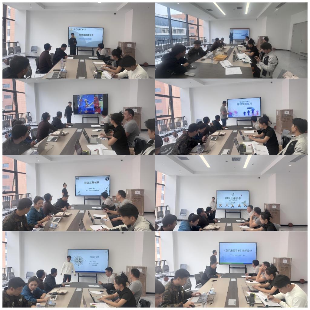小球组磨课设于8号楼101教室,教师们聚焦羽毛球、乒乓球小球类技术教学。杨秦川、夏洪波、冯欣、吴江四位羽毛球教师分别深耕正手击高远球、后场劈吊等技术,冯欣、吴江老师则分别从术语规范化、精炼教学指令入手优化设计;王博、李泳坤两位乒乓球教师聚焦正手攻球,均为后续教学注入新思路。