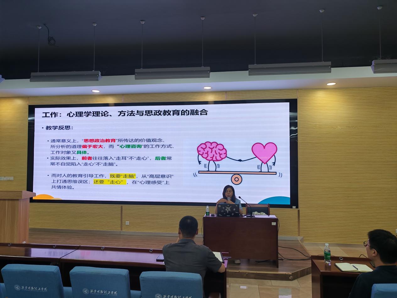 2025年5月12日,通识教育学院邀请西安电子科技大学大学生心理健康教育中心副教授、思想政治教育方向硕士生导师杜敏老师来校,成功举办了一场主题为“心理学与马理论的相遇之趣”专题学术讲座。本次讲座由通识教育学院与马克思主义学院党委书记王君涛主持,通识教育学院与马克思主义学院全体教师参会。讲座聚焦心理学理论与马克思主义理论的深度融合,通过理论阐释与实践体验相结合的方式,为与会者呈现了一场思想与智慧的盛宴。