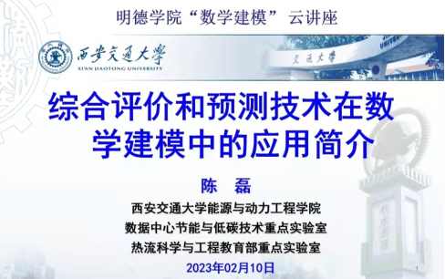 为更好地备战2023年美国大学生数学建模竞赛,全面提升开元参赛学生的赛题分析能力与建模能力。2月10日通识教育学院特邀西安交通大学能源与动力工程学院陈磊教授作了题为《综合评价和预测技术在数学建模中的应用简介》的专题报告。本次专题报告正值寒假期间,故报告采用腾讯会议方式进行。报告由通识教育学院副院长郑薇主持,数学建模竞赛指导组教师以及全体参赛学生参加了此次报告。