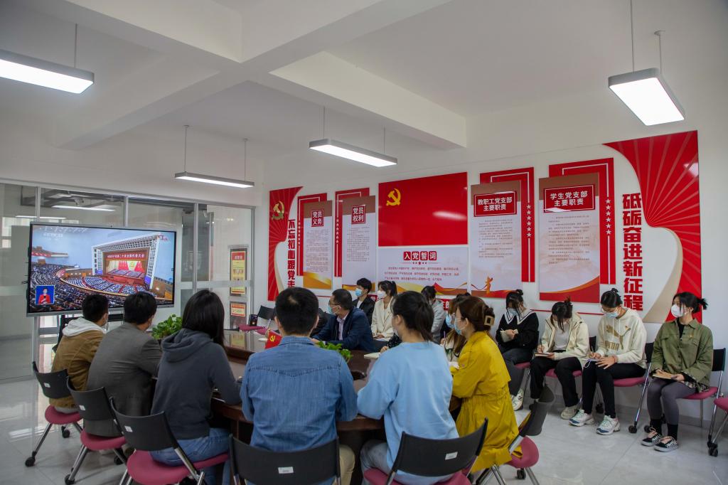 学校根据新冠肺炎疫情形势和防控要求,采取集中与分散相结合、线上与线下相结合的方式认真组织收听收看。学校领导、党委委员、机关党员代表等在学校建德楼202报告厅收看;两校区在校教职工、辅导员、学生党员代表等分散在各二级学院会议室收看;全校师生党员、入党积极分子、民主党派人士、师生群众等通过线上平台收听收看。马克思主义学院组织全体思政课教师集中在线收看。