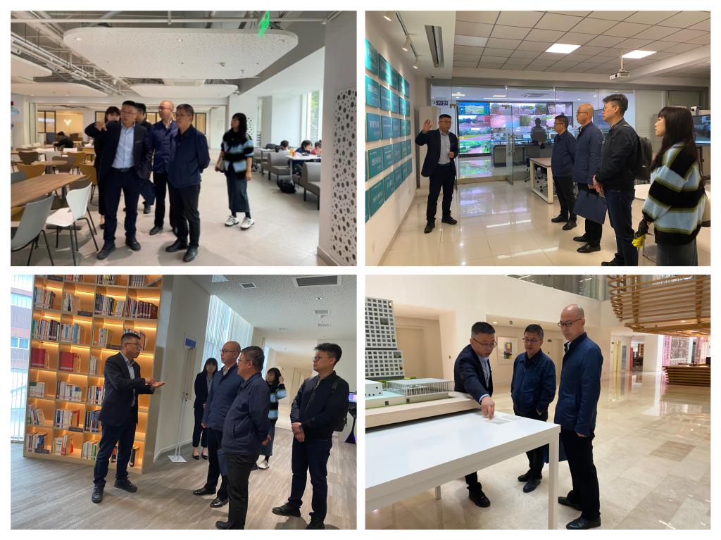 王斌宁等人一行实地参观了欧亚学院110指挥中心、艾德艺术设计学院、虹桥餐厅、高职学院、后勤集团、行政中心等地,并与副校长张军宏、后勤集团任龙刚总经理、资产运营中心程传芳主任进行了深入的座谈交流。