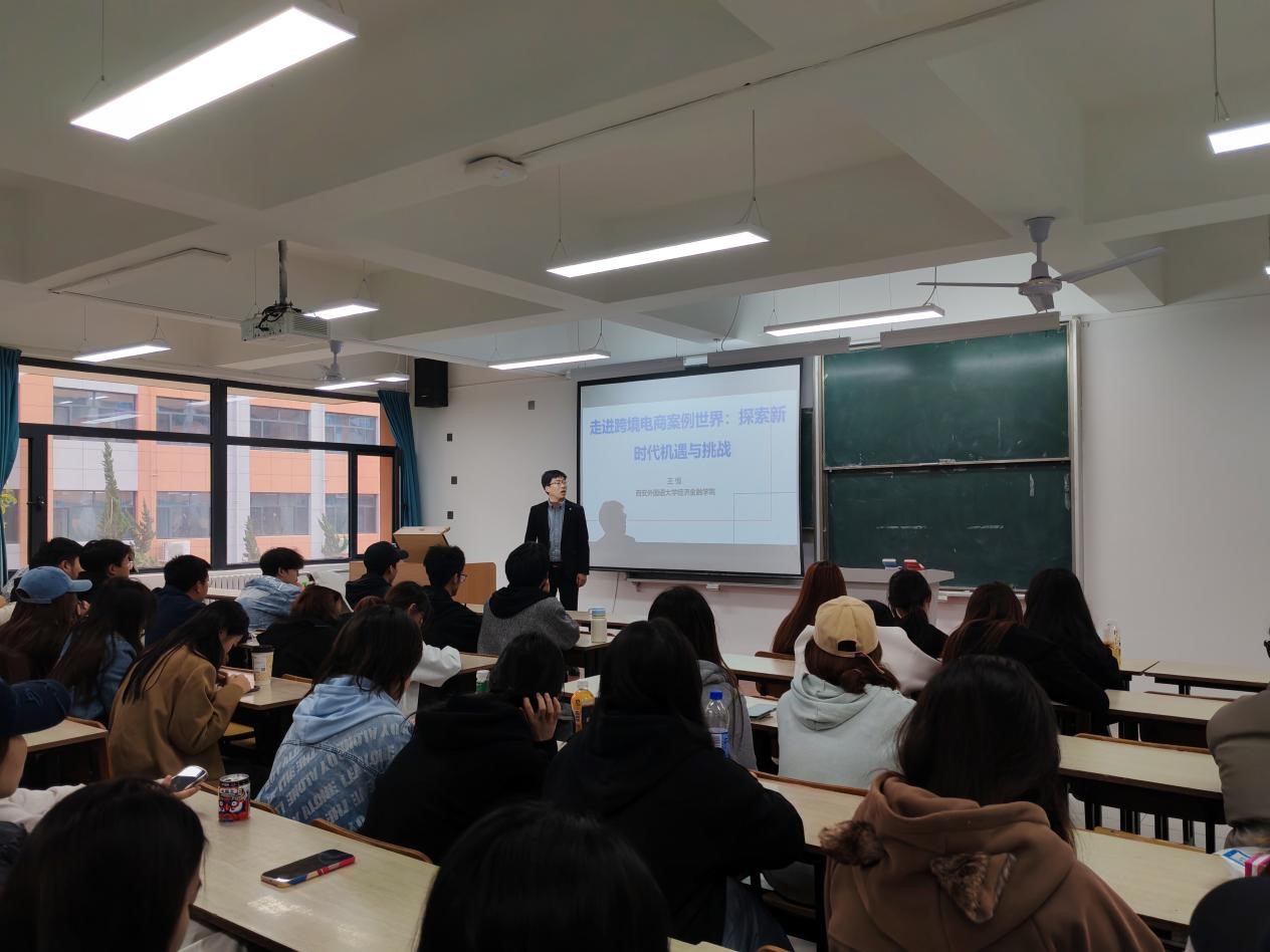 2024年11月6日,高等职业技术学院跨境电子商务专业在2号育德楼201成功举办了题为《走进跨境电商案例世界:探索新时代机遇与挑战》的专题讲座。本次讲座有幸邀请到西安外国语大学经济金融学院的王恒副教授担任主讲嘉宾。讲座由跨境电子商务专业的负责人黄珍老师主持,出席人员有跨境电子商务专业教师团队及2023级与2024级全体学生。