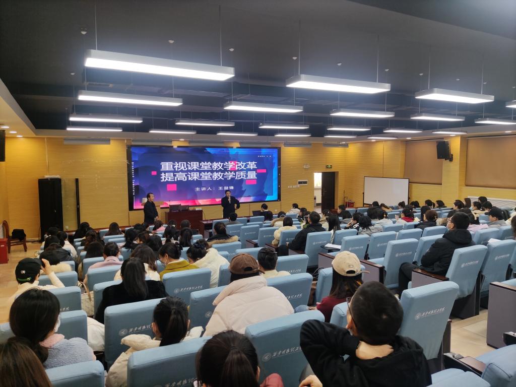 讲座开始,王益锋教授热情的向来参会教师介绍了西安电子科技大学的基本情况,用轻松幽默的话语营造了一个愉悦的会场气氛,并表示希望以后有更多的机会能够与各位老师进行深入的学习与交流。随后,王教授以自身专业为例,按照课堂教学分享、课堂教学感悟、课堂教学改革、课堂教学质量四个模块,向在座的各位老师细致的分析和介绍了如何开展教学工作的思路,并将自己多年来总结的课堂经验分享给所有的老师,帮助各位老师提高教学效率和技巧。