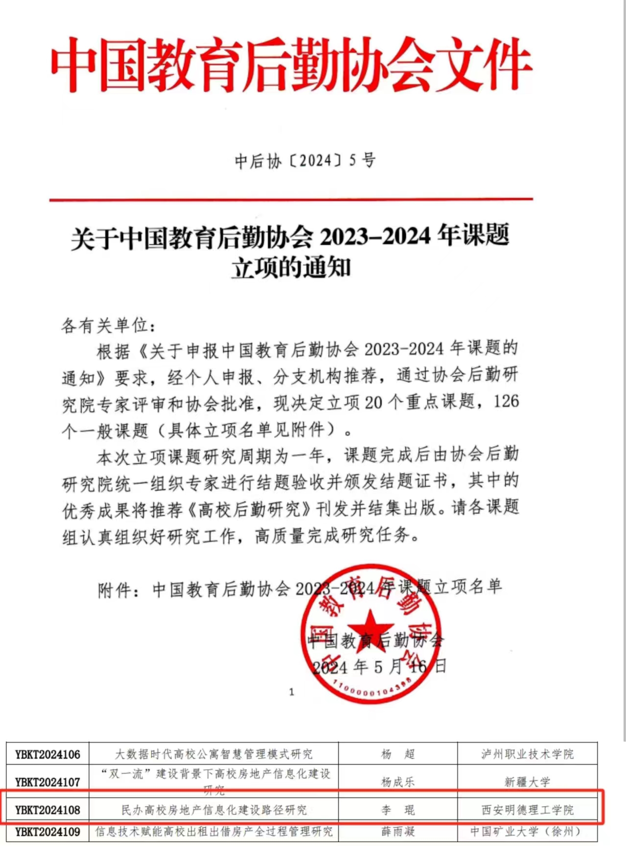 在深化教育改革与信息化建设的大潮中,Ky开元集团资产管理处在科研与实践探索上取得了重要进展。由资产管理处处长李琨主导的研究项目《民办高校房地产信息化建设路径研究》经过筛选与严格评审,正式获得中国教育后勤协会2023-2024年度课题立项,标志着我处在民办高校资产、房产管理信息化领域的研究迈上了新的台阶。