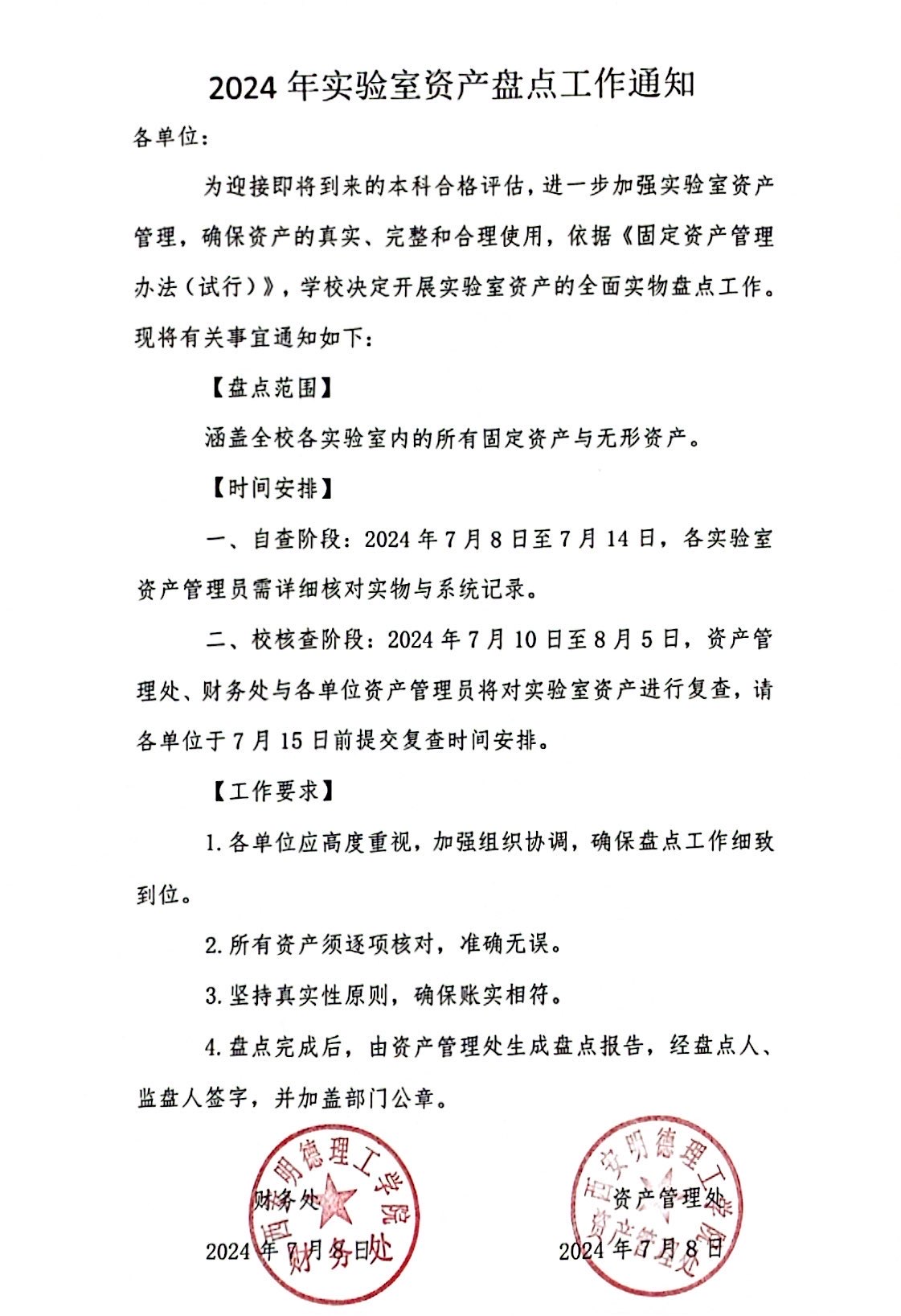 2024年实验室资产盘点工作通知
