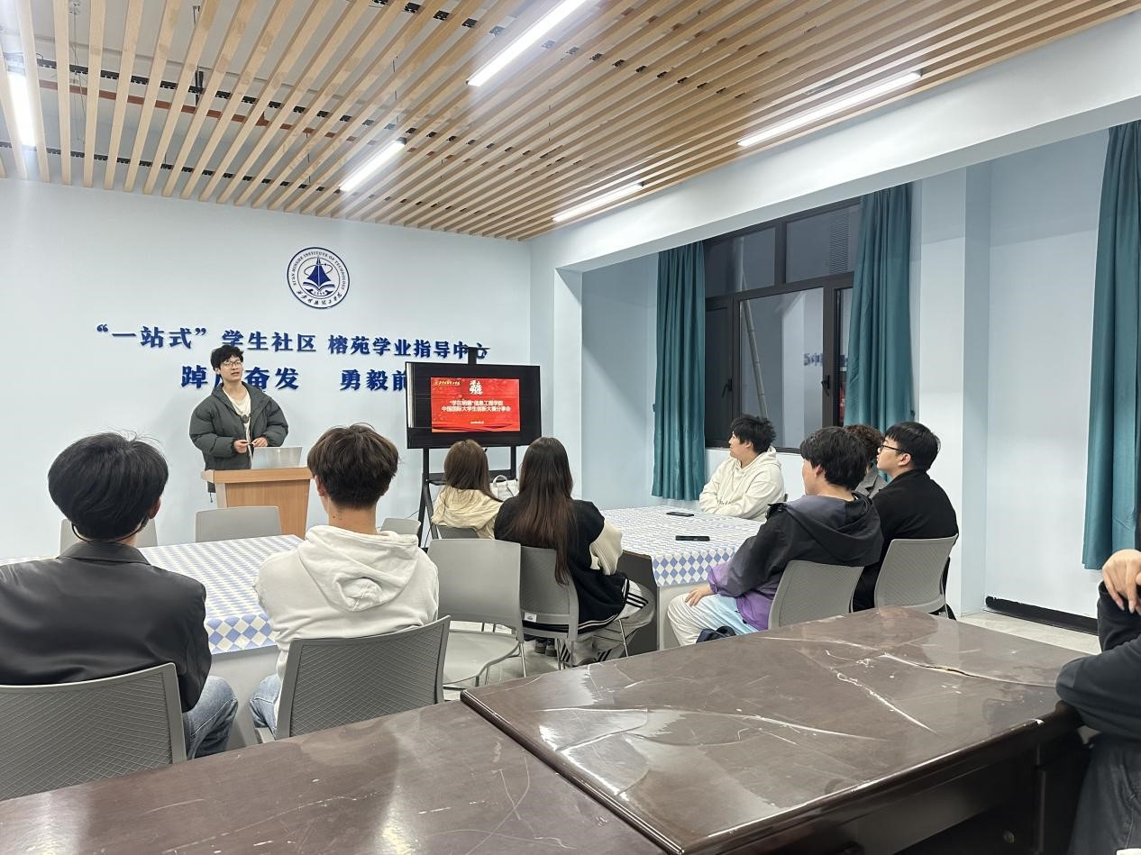 为深化学风建设内涵,构建“传帮带”式朋辈教育生态,激发信息工程学院学生创新热情,提升实践与创新能力。4月1日,信息工程学院在榕苑一站式学业指导中心举办“学在明德——中国国际大学生创新大赛经验分享会”。活动以“榜样引领+实战赋能”为主线,邀请国家级竞赛获奖团队核心成员2022级计算机科学与技术专业学生何庆舟担任主讲,学院大一大二学生现场聆听、学习。