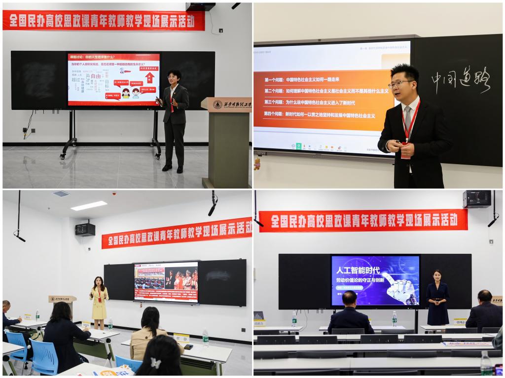 近年来,学校高度重视思想政治理论课建设,加强“大思政课”建设,构建“三全育人”“五育并举”“十育人”工作体系,挖掘明德文化育人元素,推动明德文化深入融入思想政治教育,先后与西安国家版本馆、延安革命纪念馆等地共建20余个“大思政课”实践教学基地,承办全省高校思想政治教育研究会民办本科高校分会学术研讨会,8名青年教师在省级思政课“大练兵”展示活动中获得教学标兵、特等奖、教学能手等荣誉,主持省市级思政教育科研项目20余项,出版教材著作10余部,特别是连续多年组织暑期“三下乡”暨“四百工程”暑期社会实践活动,践行将思政工作写在祖国大地上,获得中省多家主流媒体宣传报道。学校将以本次活动契机,进一步加强思政课师资队伍建设,创新教学方法,不断提升思政教育实效性,为培养德智体美劳全面发展的高素质应用型人才贡献智慧和力量。