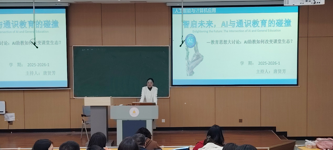 为深入贯彻落实学校教育思想大讨论工作部署,2025年10月15日,信息工程学院组织计算机公共教研室聚焦AI赋能,以“启智未来、AI与通识教育的碰撞”为主题,召开了人工智能与计算机应用课程建设教育思想大讨论,会议由唐贤芳老师主持。会议紧贴立德树人、发展建设这个核心目标,结合计算机公共课覆盖广、服务专业多的特点,从课程内容革新、教学模式升级、实践环节强化、评估标准完善四个维度展开深入研讨,旨在通过AI赋能,推动计算机公共课程高质量建设,为提升学生数字素养、培养应用型人才奠定坚实基础。