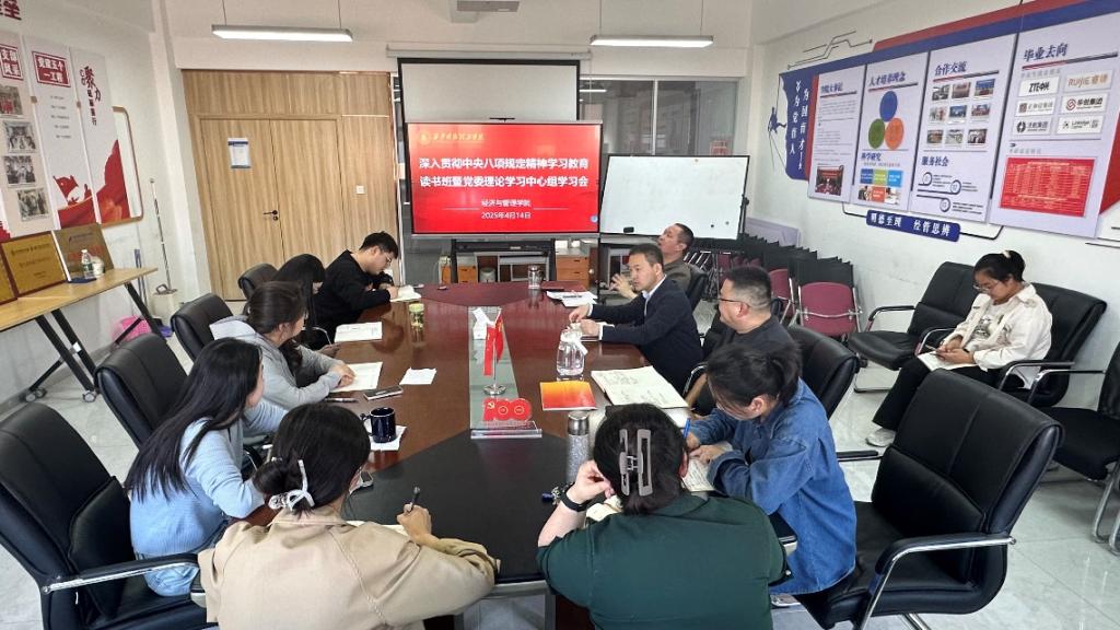 4月14日,经济与管理学院举办深入贯彻中央八项规定精神学习教育读书班,集中学习中央八项规定精神等。会议由学院党委书记何文举主持,学院党委委员和各支部书记及党务工作者参加会议。