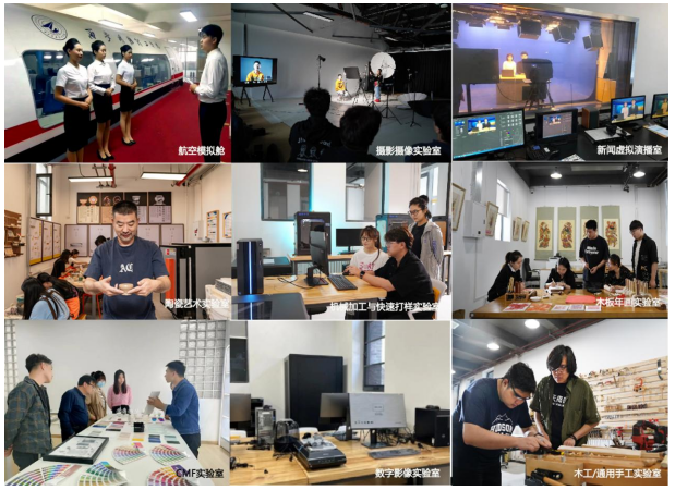 艺术与设计学院教学实验条件优越,着力打造“设计创新实践平台”和“影视与媒体创新实践平台”,致力于省重点实验(实践)平台和工程中心的建设。建有木版年画实验室、丝网印刷实验室、陶瓷艺术实验室、蜡染工艺实验室、纸纤维工艺实验室、木工/通用手工实验室、人机与信息技术实验室、机械加工与快速打样实验室、CMF实验室、油泥实验室、数字影像实验室、数字媒体&CAD实验室、摄影摄像实验室、数字摄影暗房实验室、胶片摄影暗房实验室、新闻虚拟演播室、音频工作站、演播录课实验室、航空模拟舱和传统文化实验室等40多个实验室。这些实验室为学生提供了优质的教学资源和丰富的实践机会,有力保障了6大本科专业的教学、课程实验、课程设计、艺术创作、毕业设计、创新创业、第二课堂等教学环节的顺利进行。